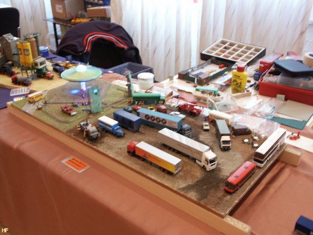 Leider kam ich mit dem Modellbau für die Ausstellung nicht so voran, wie ich dachte, so dass ich nur das Speditionsgebäude für mein Großflächen-Diorama vorstellen konnte. Auch das Baustellen-Diorama habe ich noch einmal überarbeitet, neu bestreut und den Aushubhaufen "bepflanzt", so dass es im neuen Outfit daherkam.