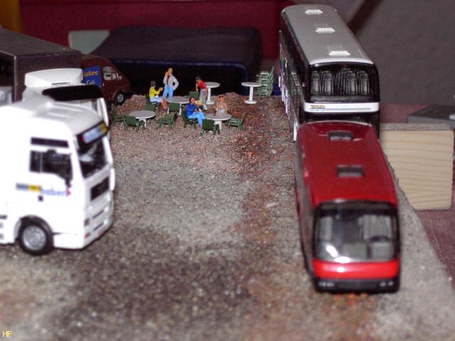 diesmal mit den Fahrzeugen seines Gartenbaubetriebs (Markfeld-Gärten). Originell ist der Oldtimer-Pickup mit den Blumenkübeln auf der rechten Seite des Dioramas.