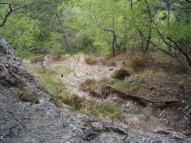 Doch nun ging es daran, den zweiten, nicht so steilen Gang zu erkunden. Hier mußte irgendwo der senkrechte Schacht enden, den wir von den Eingangskavernen aus schon gesehen hatten und weitere Kavernen und offene Geschützstellungen warteten auf ihre Entdeckung.
