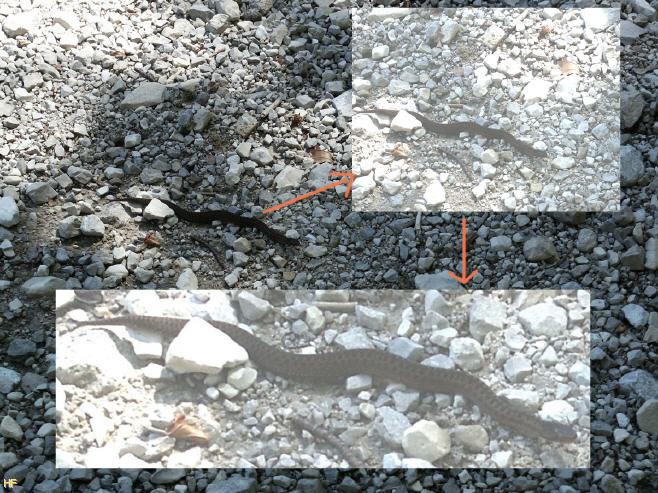 und zwar ein Jungtier aus der Gattung der schwarzen Kreuzotter. Diese war vielleicht nur 10 cm lang, aber egal ob groß oder klein, das Gift dieser Schlange kann tödlich wirken. Es ist wesentlich heftiger, als das der "normalen" Kreuzotter.