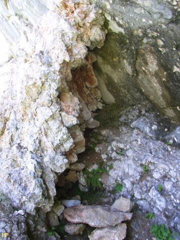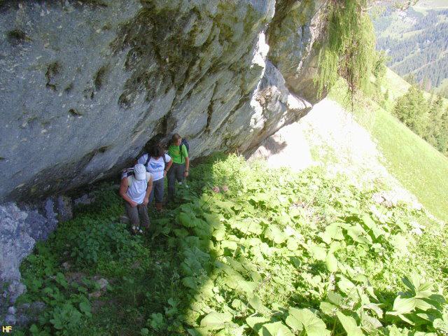 immer dem Pfeil nach und am Fels entlang. Der Felsblock in der Mitte musste umgangen werden und dann wurde es erst richtig "lustig"....