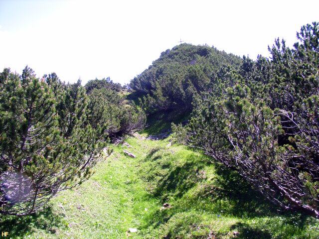 kam in Sicht, an derem Ende es dann rechts wieder weiter ging. Im Hintergrund sieht man schon das Gipfelkreuz.